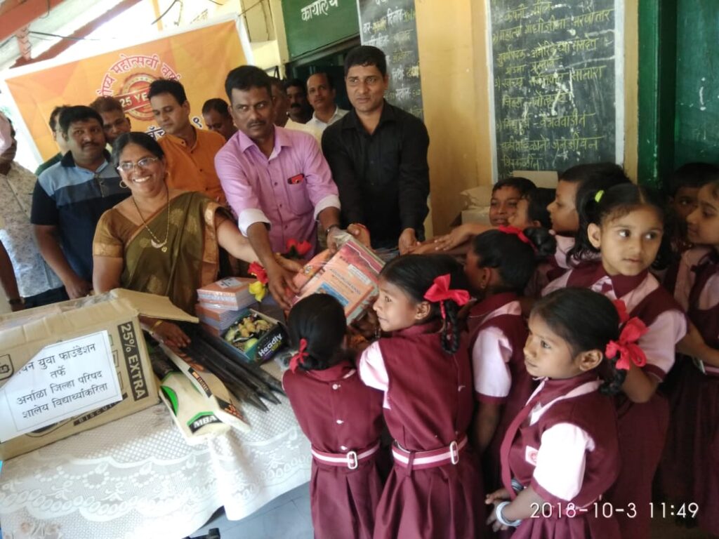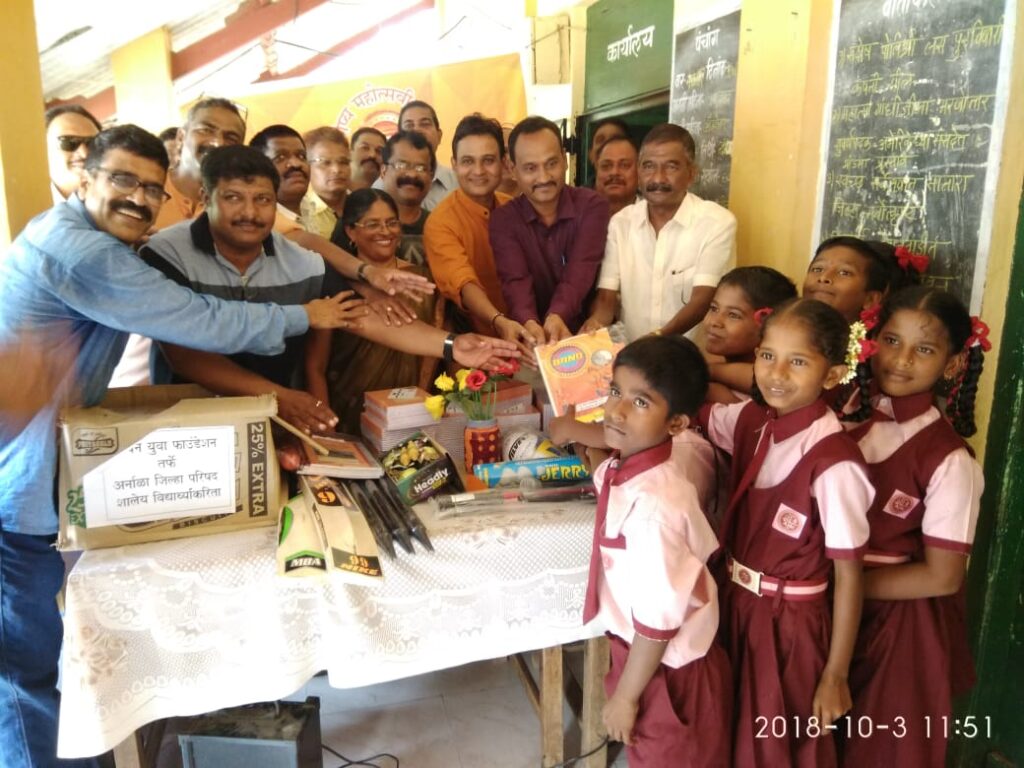 या शाळेतील १२५ विद्यार्थ्यांना संस्थेच्या वतीने शालेय साहित्य, खाऊ, आणि क्रीडा साहित्य देण्यात आले.