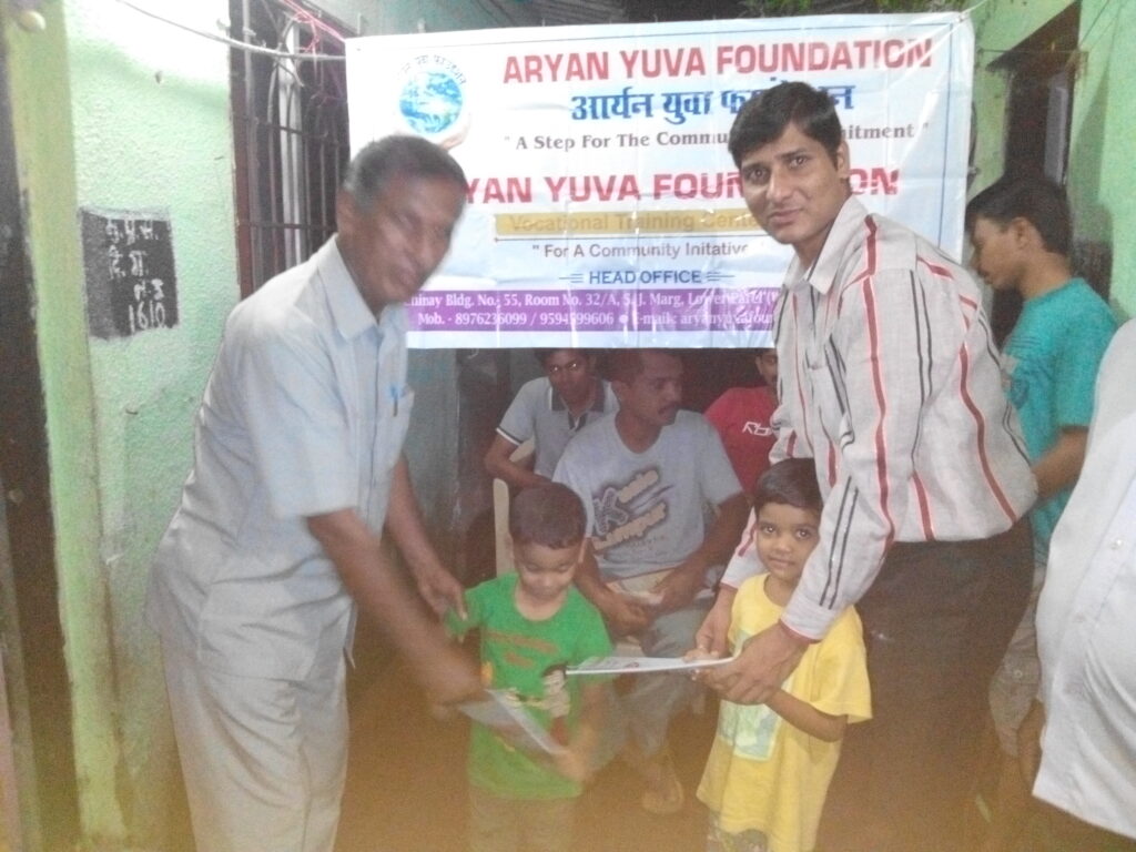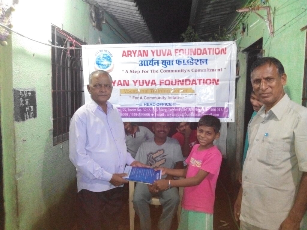 Believing that “Education is the right of every child,” the Aryan Yuva Foundation organized a special Notebook Distribution Program on 6th August 2014 at Diva Ganesh Nagar. The event was graced by the Foundation’s office bearers, members, and local citizens, who came together to support and encourage the students. During this program, 150 students were provided with notebooks, school materials, and essential educational supplies to help them continue their studies without interruption.